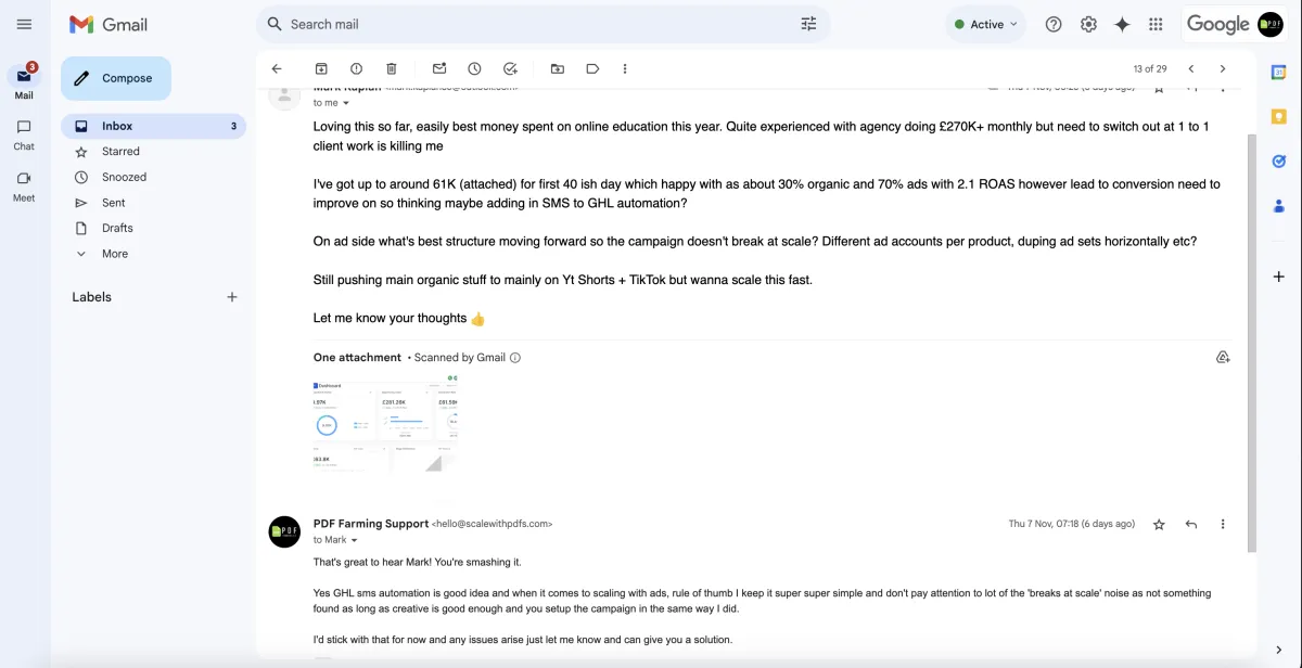 I fell back in love, deleted everything else work wise from my life once I saw success with it and went all in, expanding the method as I went and now managing 26+ accounts that go beyond just PDFs (advanced stuff I'll share with you later when you go through with it).