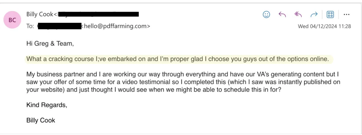 Please also note this online world is full of scammers, particularly when it comes to online education, so if you contact us within 24 hours saying I want a refund it will be a straight up no as per our terms and conditions. If you genuinely try with this method, do everything as we show and do not see a ROI, then we will evaluate it and if all checks out refund every penny.